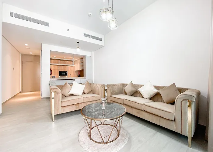Wilton Terrace Charm- Stylish 1-Bedroom In Mbr City With A Pool View apartment includes an equipped kitchen with an oven and a dishwasher. Dubai International airport lies within 5 km from the 73 m² apartment.